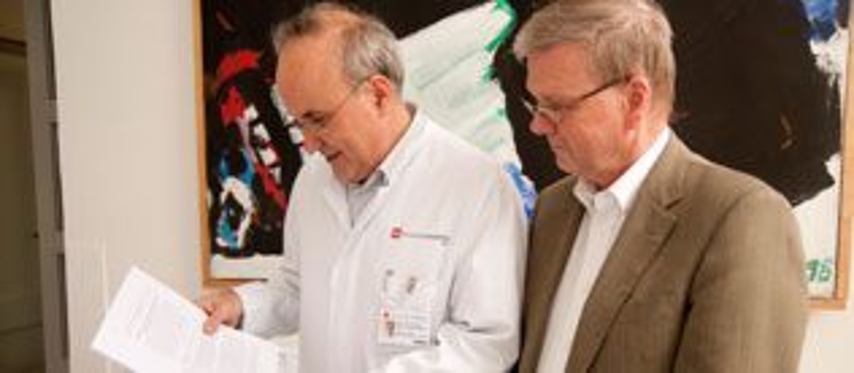 Bildunterschrift: Prof. Dr. Stavros Konstantinides (links) und Prof. Dr. Ulrich Walter (Wissenschaftlicher Leiter des CTH) präsentieren mit Stolz die Publikation im New England Journal of Medicine