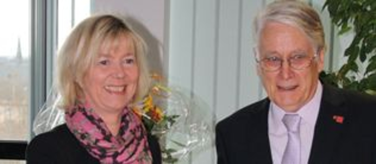 Wissenschaftsministerin Doris Ahnen gratuliert Univ.-Prof. Dr. Werner E. G. Müller zur Auszeichnung mit dem Verdienstkreuz 1. Klasse des Verdienstordens der Bundesrepublik Deutschland