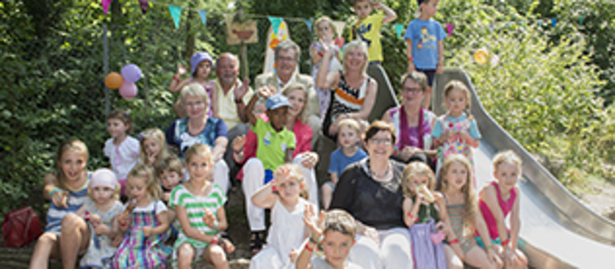 Bildunterschrift: Die Kinder, Freunde und Förderer des Kinderhauses VILLA NEES feierten am Samstag ihr 20-jähriges Bestehen: Geschäftsführer Gerhard Sänger, Ferdinand Scherf (Mitglied „Freunde der Universität Mainz e.V."), Ministerin Doris Ahnen (alle hintere Reihe) sowie die Leiterin der Villa Nees Marlies Märlender, die Vorstandsvorsitzende und Medizinischer Vorstand Prof. Babette Simon und die Ortsvorsteherin der Oberstadt Ursula Beyer (mittlere Reihe) und Pflegevorstand der Universitätsmedizin Mainz Marion Hahn (vorne rechts)